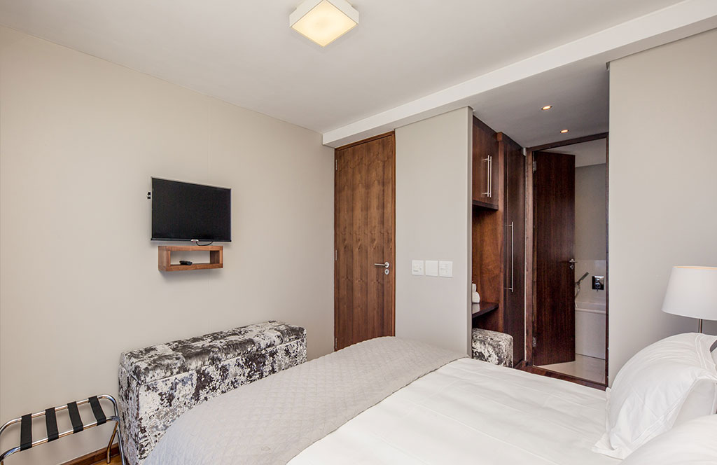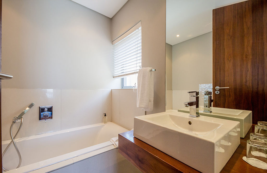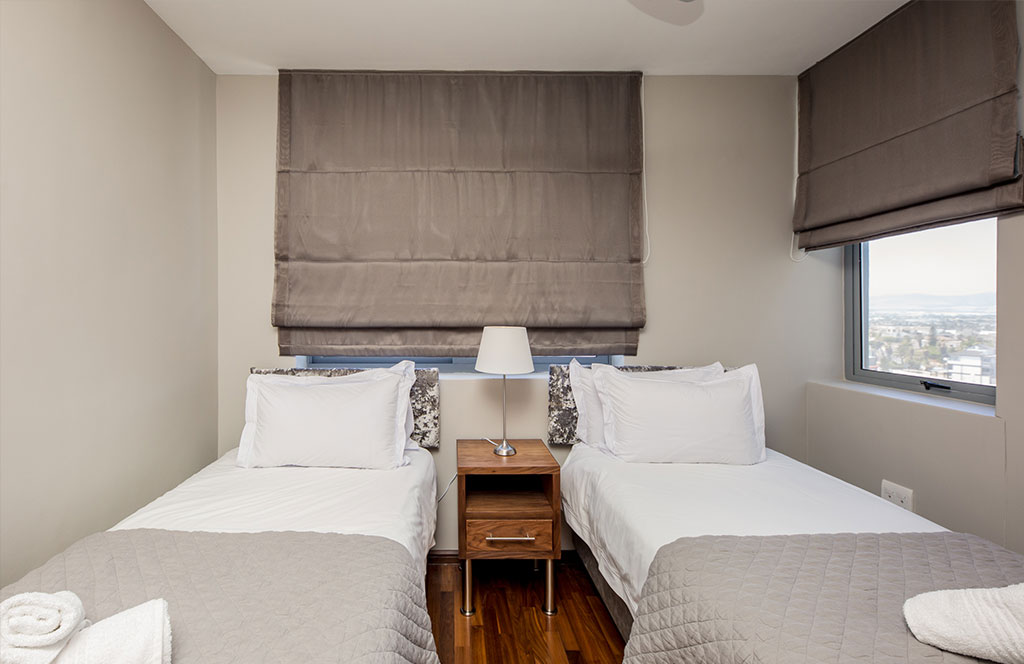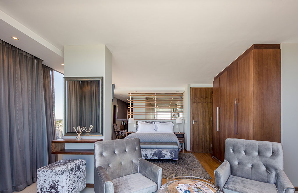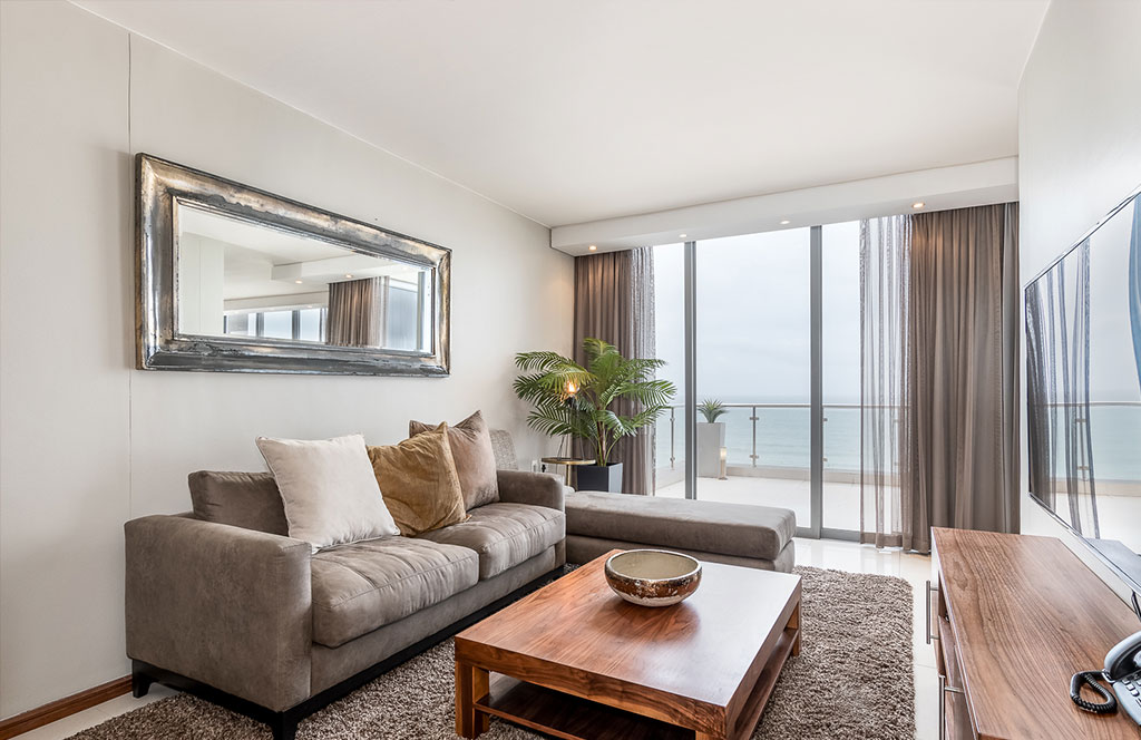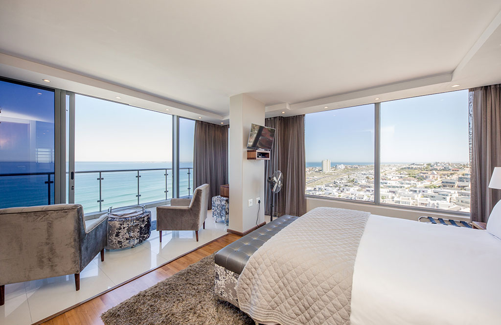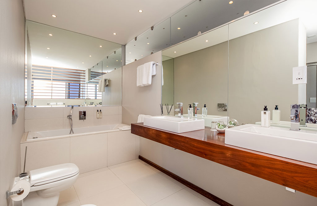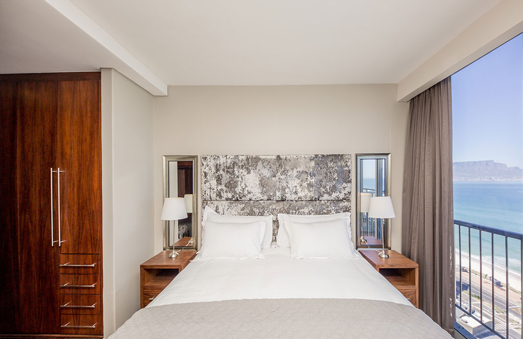 - Air-conditioned open plan living area with lounge and an 8-seater dining room table where you get the best views in Cape Town of Table Mountain and the ocean.