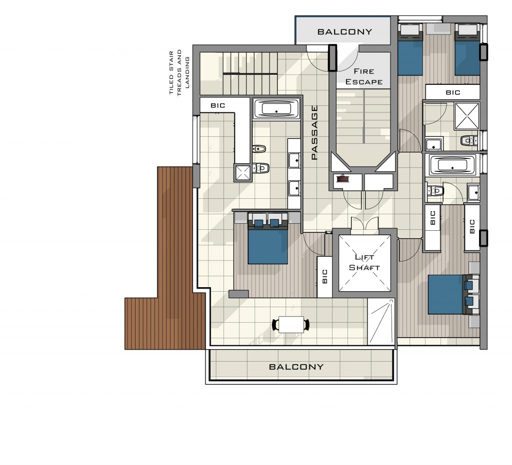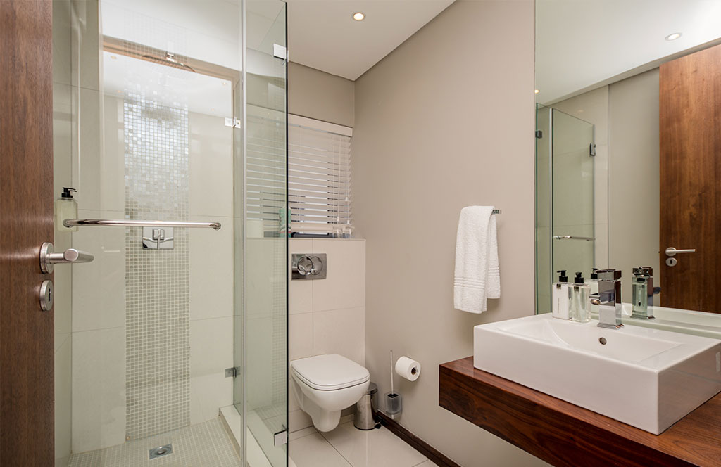 - The third bedroom has 2 single beds with en-suite shower, washbasin and toilet.